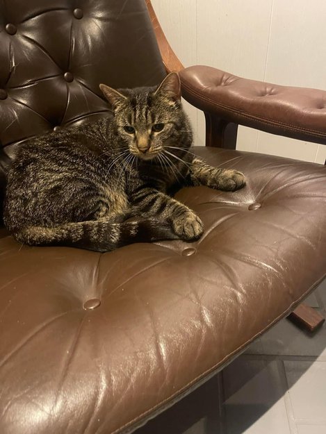 Han har ikke vært inne siden søndag formiddag🫣 han er aldri mer ute enn par timer på natta og kanskje litt på dsgen, ellers holder han seg inne og hvertfall når d er kaldt🫣han er også chippet