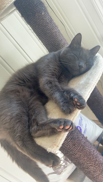 Redd for mennesker og dyr, prater og mjauer mye. Han har ikke halsbånd (han river det av).