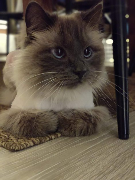 Vant med barn andre katter og hund,- da han er oppvokst i en familie med 2 andre katter, en hund og 4 barn.