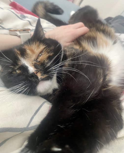 Folkesky frøken med ekstra lange værhår og tigerfarget bakbein