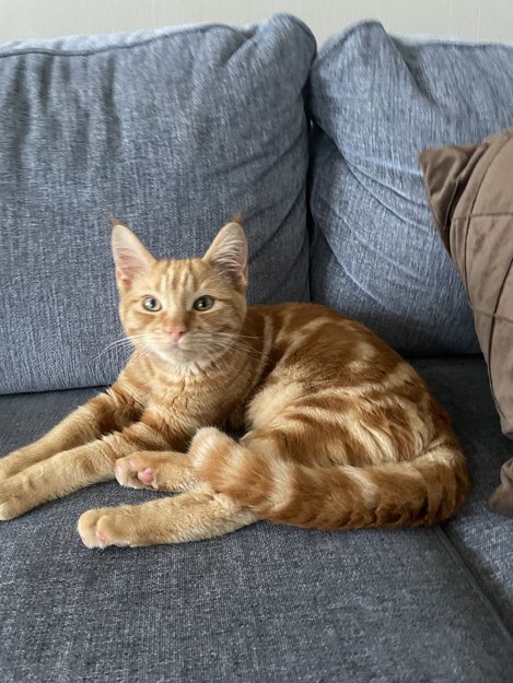 Sosial og kosete, fluffy hale og ører. Han er 7 måneder gammel