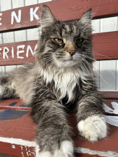 Brun, grå,svart,hvit hannkatt var savnet i Ringsaker