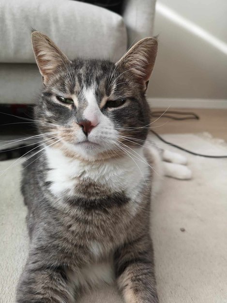 Tre år gammel hannkatt. Hender han er borte ett døgn, men har ikke sett han siden lørdag kveld som er veldig unormalt for han. Han er en innmari kosete og selskapssyk katt og er ikke redd for å oppsøke mennesker.