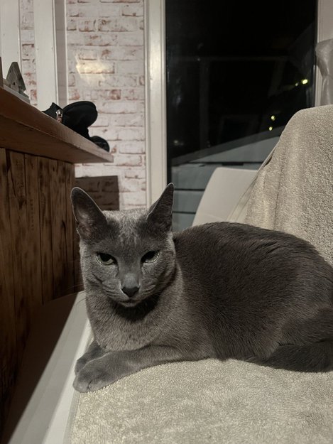She has green eyes. She is a homecat she wasnt go outside. She has 8 years old but she look young. She has trust issues.