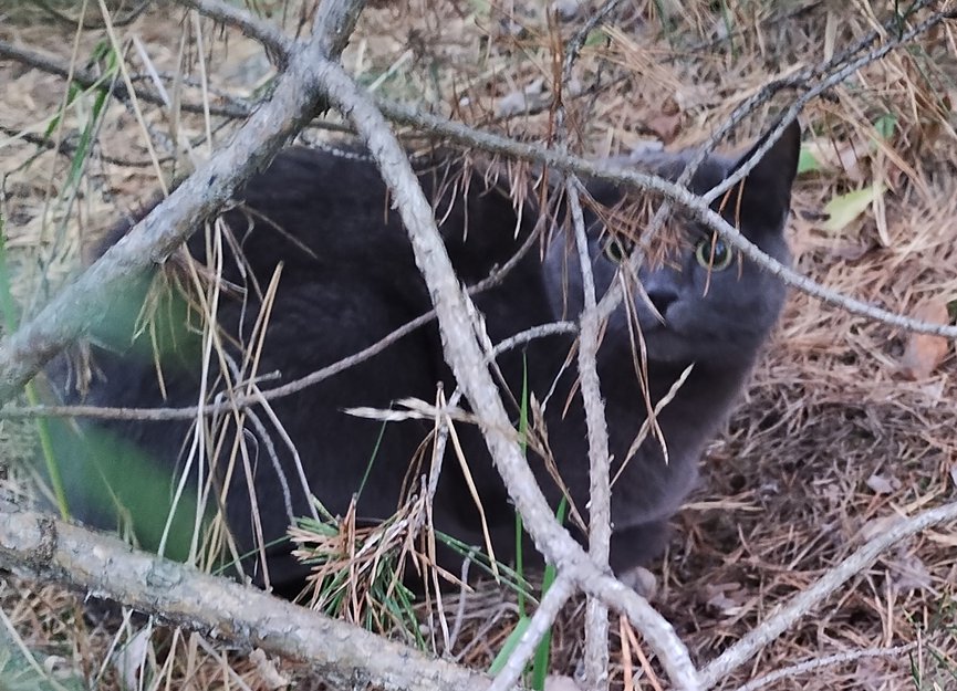 Gikk forbi denne katten som mjauer og mjauer. Hadde med meg hund så katten ble redd og gikk bak en busk. Fikk tatt et par bilder.
