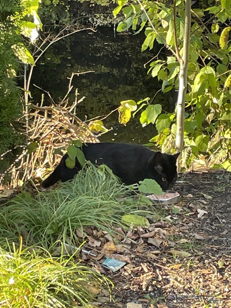 Antatt hjemløs katt. Har blitt matet ute over tid og er nå fanget inn. Katten har ikke chip. Mulig hannkatt. Den er ganske liten og virker ung.
