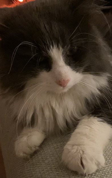 Grå og hvit hannkatt funnet i Lier
