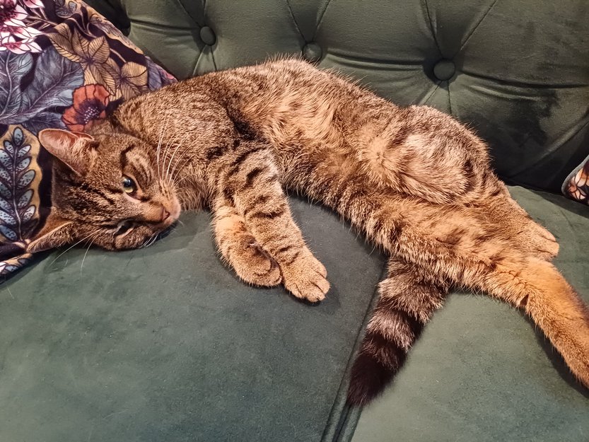 Vi har lagt ut bilder og beskrivelse på "Flateby's oppslagstavle" og "Savnet eller funnet kjæledyr i Enebakk" på Facebook uten at eier har meldt seg.