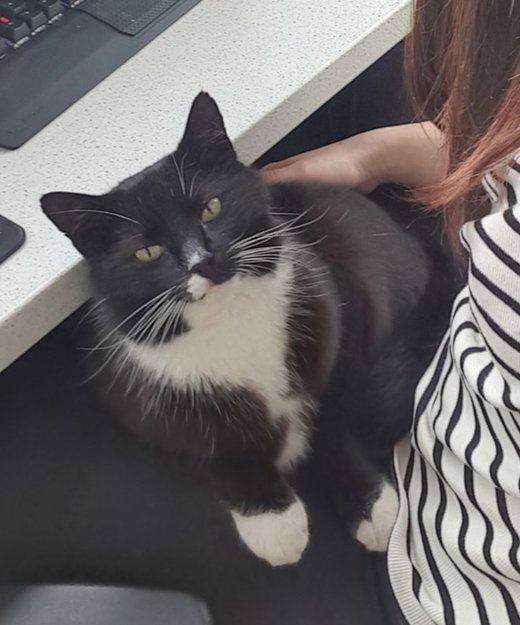 Svart hvitt tuxedo katt hann, han er veldig kosete og menneske vennlig.