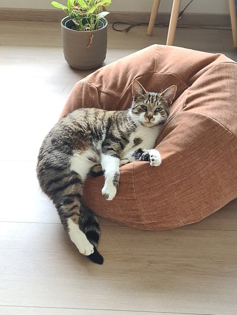 En frisk og gøyal katt som har et nokså svakt mjau.
