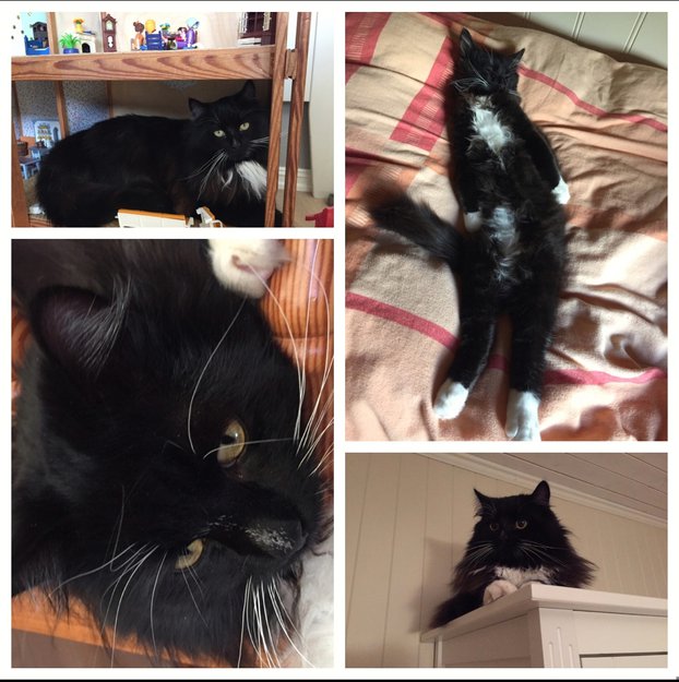 Ludwig er en hannkatt på to år. Han er kosete og veldig glad i mat. Han har langt pels, hvit på potene, brystet og magen, og resten er svart. Han er glad i mennesker, og veldig kontaktsøkende. Hodet hans er svart, med noen få hvite hår på nesa