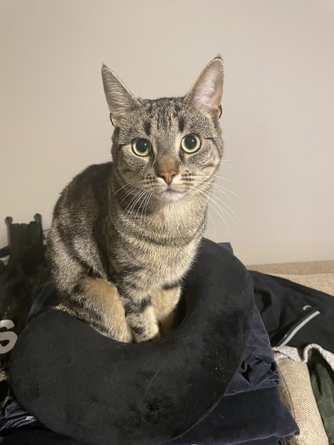 Jeg trenger deres hjelp til å finne min kjære katt, Loki. Han er en vakker mørkebrun katt med guleaktige striper, og han ligner på en tabby rase. Loki er tynn og lang, med dype, grønne øyne. Han har en unik evne til å kamuflere seg i naturen, så han blander seg fint inn i omgivelsene sine. Loki er 2 år gammel, og han har vært borte en stund nå. Hjelp meg med å finne han