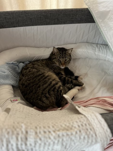 Grå sort og hvit stripete hann katt sist sett 1830 2.11 i Midgarveien. Han har vært borte i 24 timer nå, noe som ikke ligner han.