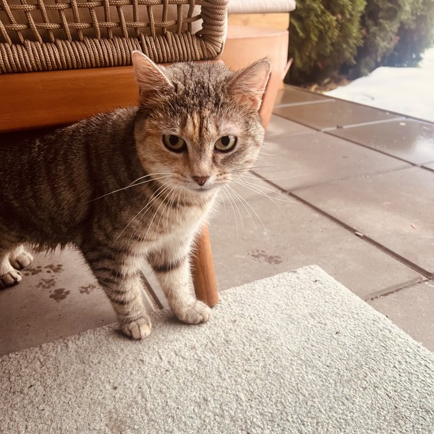 Ung katt som majuer og skraper på døren vår hver dag/ kveld siste fem dager. Er utenfor opptil timesvis hver gang.