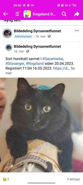 Sort hunnkatt savnet i Stavanger