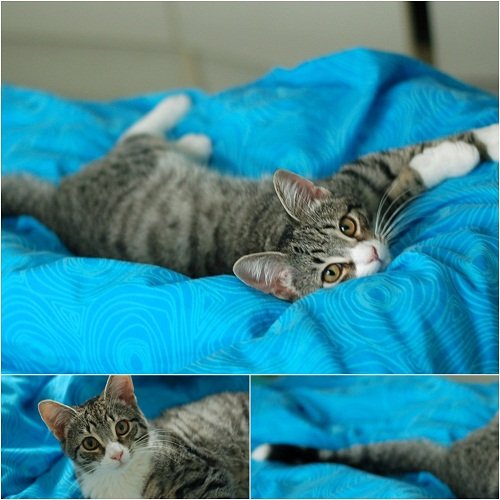 Veldig sosial og kosete pus. Ca 5-6 mnd gammel. Liker godt å ligge på fanget, men leker også masse.