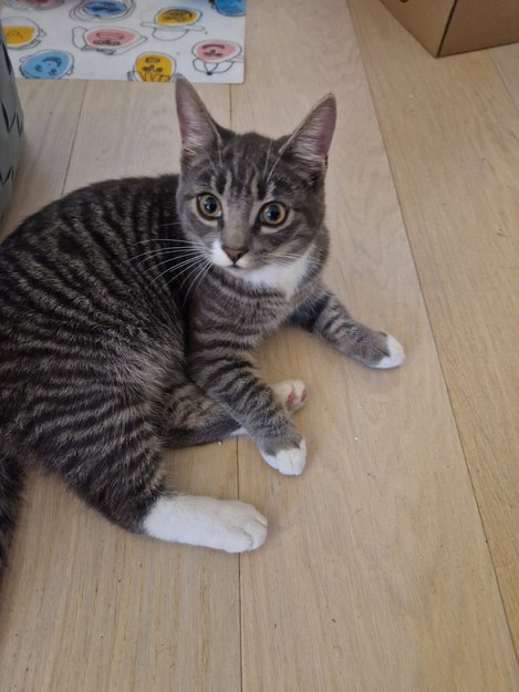 Katten er svært kontaktsøkende, leken og rask på labben. Den maler svært høyt og mener alt i verden er en lek. Den lar deg gjerne både klappe og plukke den opp. Den er liten av vekst. Er id merket, men har ikke nr her akkurat nå.
