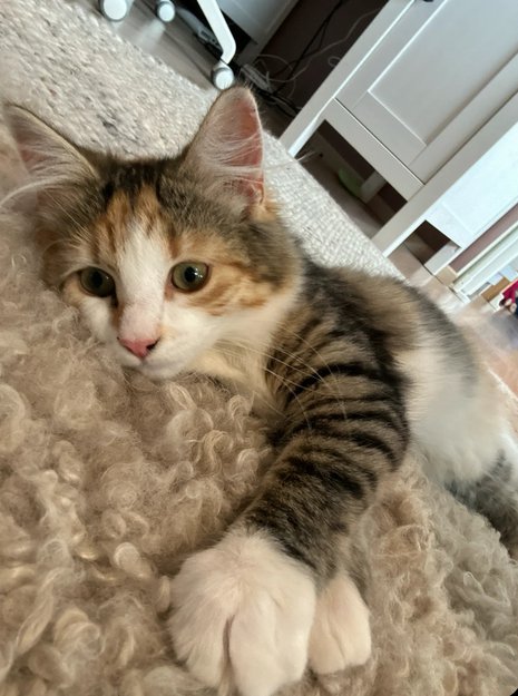 Hun er chippet. Er veldig tam, kosete og leken. Liker godt barn og folk generelt. Hun er småspist og ganske lita. Vi håper noen har funnet henne og at alt står bra til.