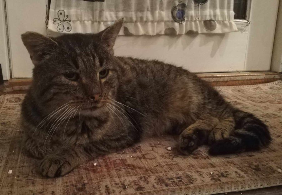 Katten er sosial, kjælen, tam. Ukastrert hannkatt, ikke id-merket. Eldre katt, trolig 12+.