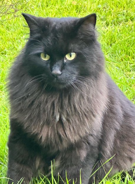 Pus har vært borte siden fredag. Han har microchip. Er litt redd for mennesker. Bor på Etterstad. Helt svart med noe grå lang pels.