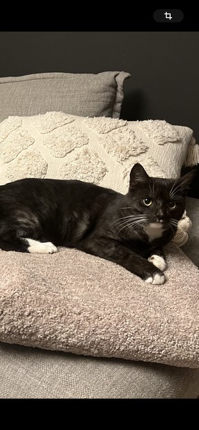 Mørkegrå, med sorte striper. Hvit bryst og hvite poter. En liten hvit melkebart. Han er tam, kan banke på hos fremmede for å få mat. En skikkelig jeger. Ikke redd. Liten av størrelse