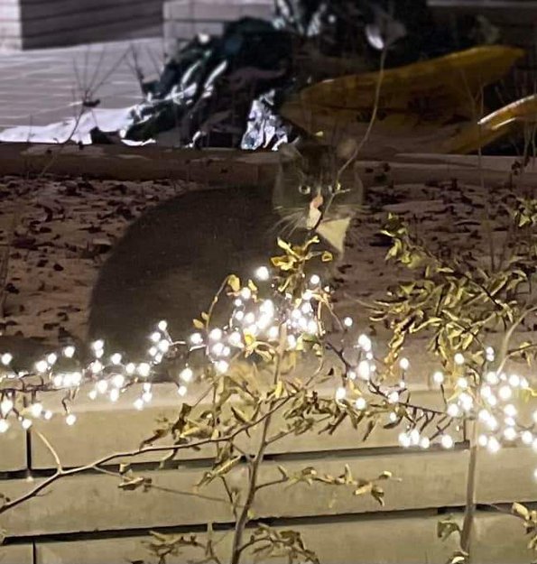 Pus dukker opp på natten i Ski sentrum. Litt sky.