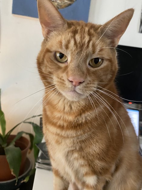 Han er lang, vakker, snill og sosial. Trygg. Som en liten oransje og brun puma. Striper og en meget fin O formasjon på siden.