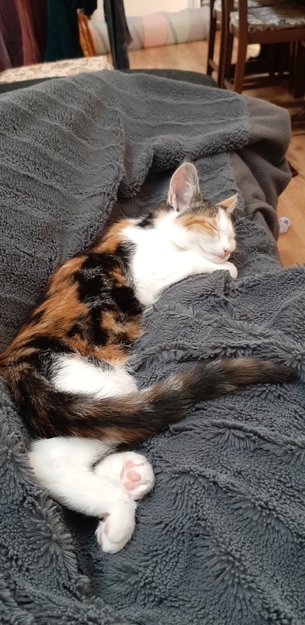 Lyder navnet sitt Villemo, liten for alderen sin. Er 4,5 år gammel, men er på størrelse med en tenåringskatt.