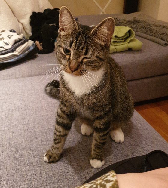 Grå, sort og hvit hannkatt var savnet i Kristiansand S