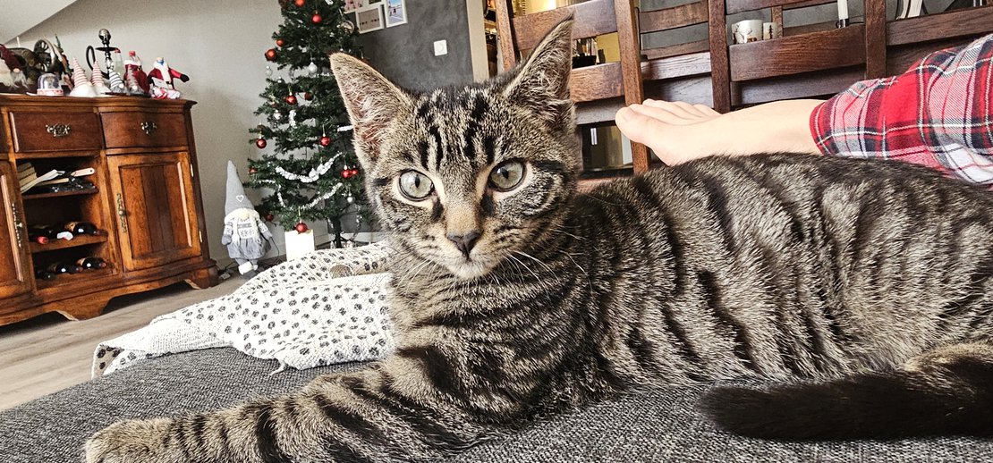 En han katt på 7 måneder klarte og snikke seg ut vinduet under hus vasken til jul. Og det er hans første tur ute. Han reagerer på navnet sitt og er dypt savnet