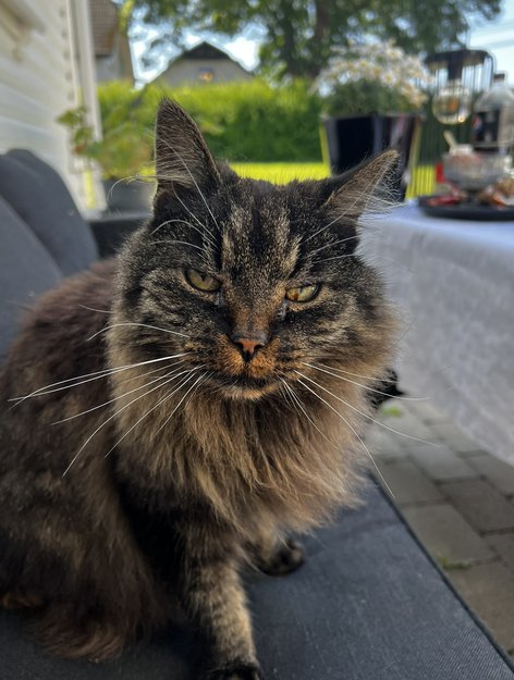 Katt savnet og har ikke kommet hjem på over ett døgn. Katten holder til i Vennesla i Røllend. Katten er veldig gammel rundt en 16 år.