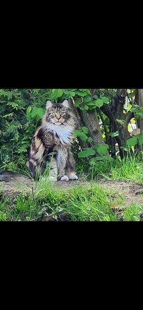 Sort,grå,gul,hvit hannkatt var savnet i Arendal
