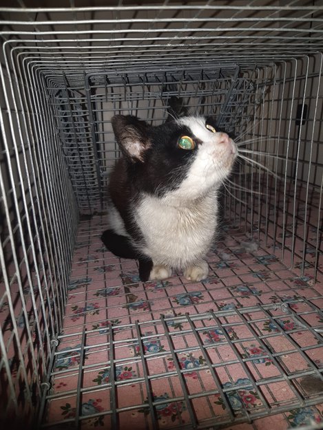 Hvit/svart katt ble funnet i Hokksund
