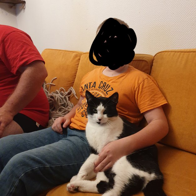 Han har en svart prikk på nesa og og svart flekk under Haka. Han er veldig kosetete og sosial. Lyder navnet lillekos.