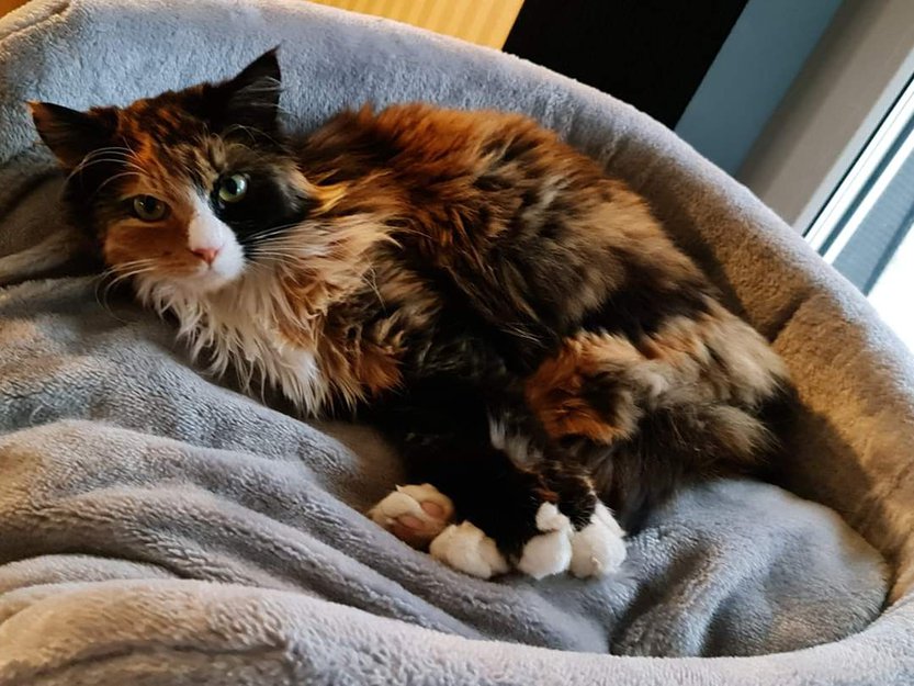 Rødbrun,sort,hvit hunnkatt savnet i Hustadvika