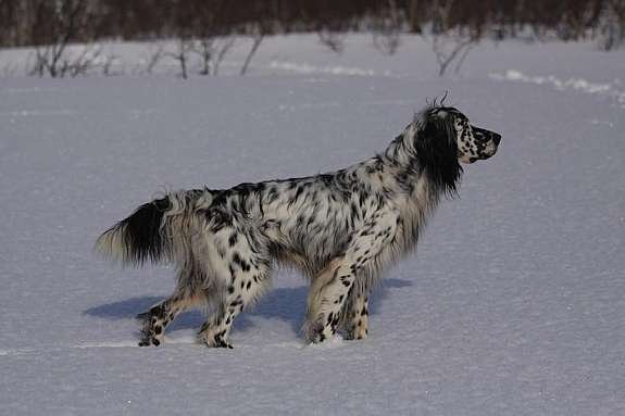 Hvit/svart engelsk setter forsvant med oransj jaktdekken på fuglehundprøve på Drevfjellet.
