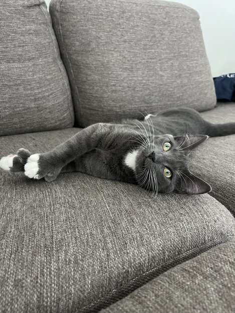 Grå med hvite spotte hannkatt savnet i Sarpsborg
