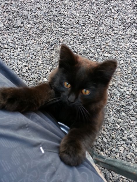 Det er ingen eier som har meldt seg til denne flotte lille katten, så han blir boende her hos oss og våre to andre katter :)
