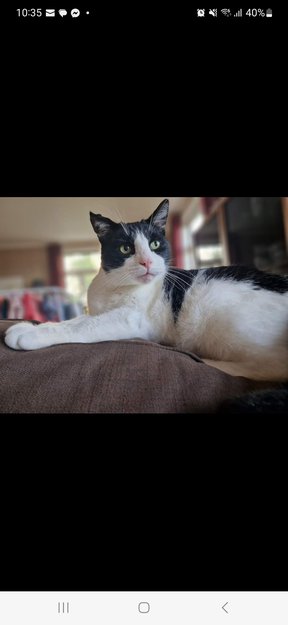Snart 14 år gamle Leo gikk ut i går og kom aldri hjem.Er kun ute 5 min nå på vinteren.Han har aldri vært borte før eller gå ute så lang tid uten å komme hjem for mat.Stor gutt på 7 kg,har et svart hjerte på ryggen.
