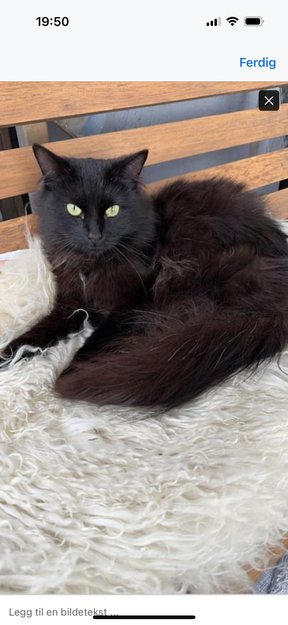 Litt lite pels på tuppen av halen, liten hvit flekk på bringe.