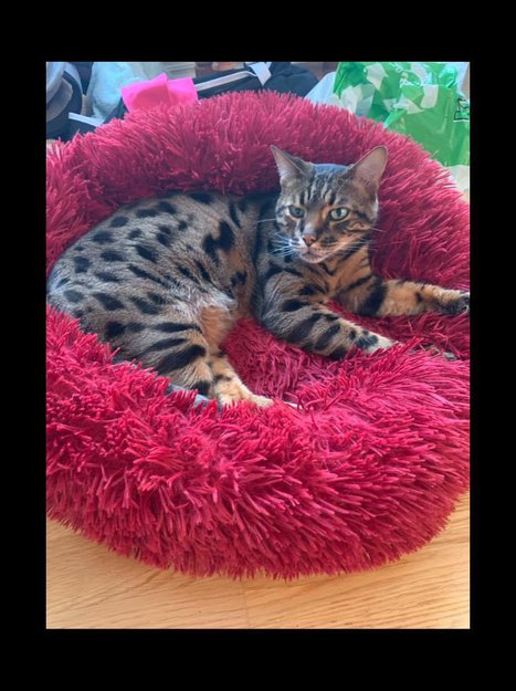 Han er en Bengal på 10 år, frisk, men går på hjertemedisin.
