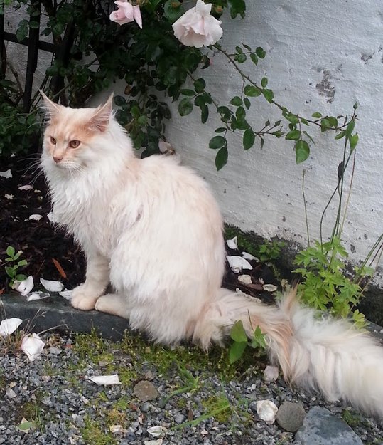 Leo er en relativt stor, veldig langåret, kremgul hankatt. Han er ID-merket og har tatovering i øret, men ikke halsbånd. Han har stor, buskete hale. Det er sannsynlig at han har en del tuster i pelsen som kan kjennes som relativt harde/kompakte klumper.