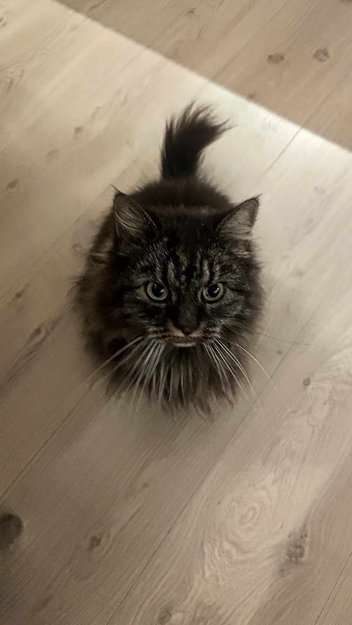 Langhåret, mørk pels med noe lysere farger i det. Skeptisk og nysgjerrig. Veldig skvetten. Samtidig glad i kos.