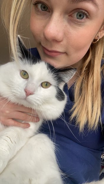 Den heter Bernard er 1 år og 2 måneder og er en innekatt. Den lyder til navnet Bernard og er veldig kosete