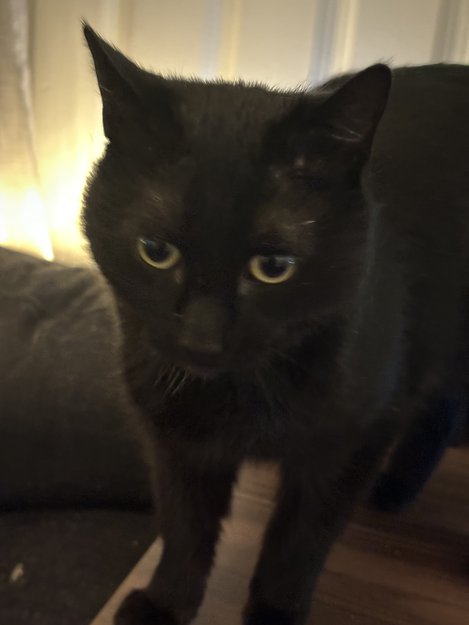 Lynet er en rask pus! Han er veldig pratsom så mjauer veldig høyt! Han er en stor men slank katt. Han er veldig gla i kos. Men ikke nå når han har kommet seg ut av huset. Han er en innekatt! Ikke vært ute på en god stund. Hvis du kommer nærmere han ser du at halen hans kan vibrere ytterst på haletuppen.