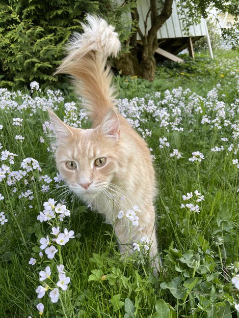 Vi så Litten sist på søndags kveld, 5 mai, og vi har ikke sett ham siden. Han pleier å gå ut og inn gjennom kattenluken sin mange ganger om dagen. Han er en glad, nysgjerrig og utforskende katt, så vi er redd han kan ha gått inn i en garasje eller inn til folk. Han er trygg på mennesker, leken, men ikke særlig kosete med fremmede.