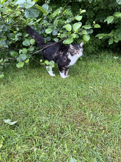 Fant denne katten ser ut som kattunge mindre mulig en 8 måneder , den var på samme plass i busken ute i ti dager , å hadde en følelse måtte ta den med , den er ikke chippet så da var det rett avgjørelse , å den er levert til Bergen sør på sørås Anicura veterinær der , den blir godt ivaretatt de skal søke eier men jeg legger ut her å !