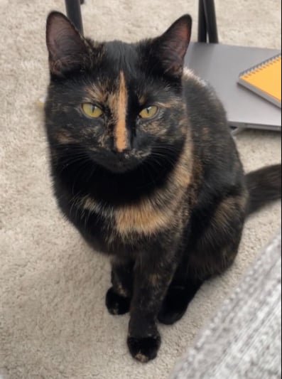 Frøya er innekatt. Hun bor egentlig på Rælingen men vi passer den for datter. Hun klarte å klore seg gjennom netting på vinduet når jeg stod å lagde mat og etter det har vi ikke sett henne. Hun er veldig redd for høye lyder og er redd fremmede mennesker. Hun mjauer veldig stille. Frøya er chipet.
