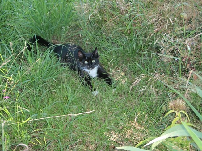 Simba er en sort og hvit voksen hannkatt. På bildet har han en bjelle, men den har han ikke lenge.Uredd mennesker og ganske kosete.