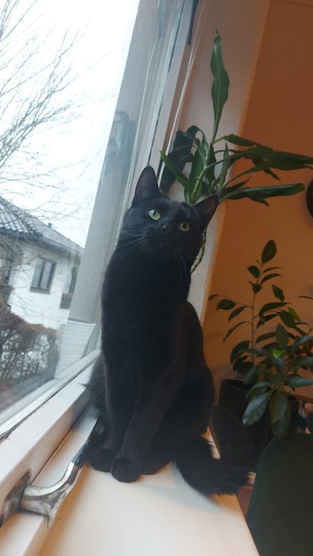 Hun er snart 2 år, så hun er litt liten enda. Hun er helt svart og er normal vekting. Hun er helt svart.